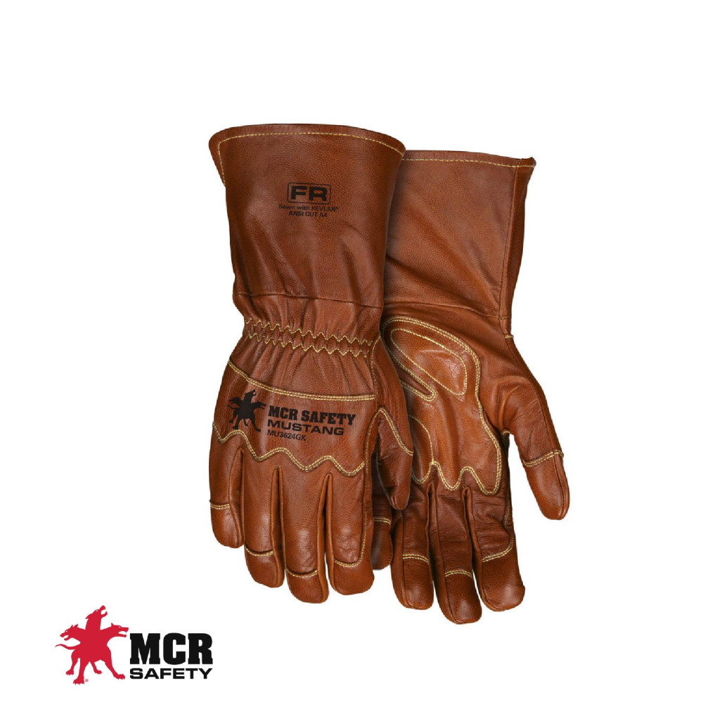 El guante de campo MCR Safety Mustang Utility, fabricado con cuero de primera calidad, proporciona la destreza necesaria para sentir con qué se trabaja, a la vez que ofrece una excelente resistencia a la abrasión. Los guantes resistentes a los cortes MU3624GK están forrados con aramida DuPont™ Kevlar® de calibre 13 y cuentan con cuero de cabra marrón de primera calidad, refuerzo en la base del pulgar, doble palma, puntas de los dedos y nudillos. Todas las costuras están doblemente cosidas con DuPont™ Kevlar® para una mayor durabilidad y para evitar que se desprendan. Además, incorporan puños elásticos fruncidos y un cómodo diseño de pulgar tipo ala.