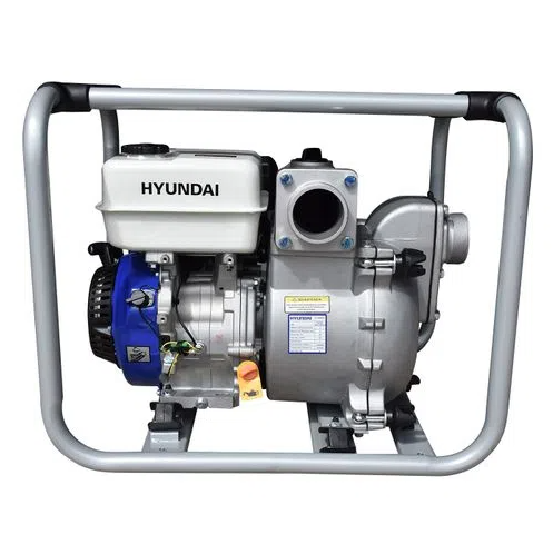 Motobomba autocebante tragasólidos 3x3 con motor de 4 tiempos a gasolina marca HYUNDAI.