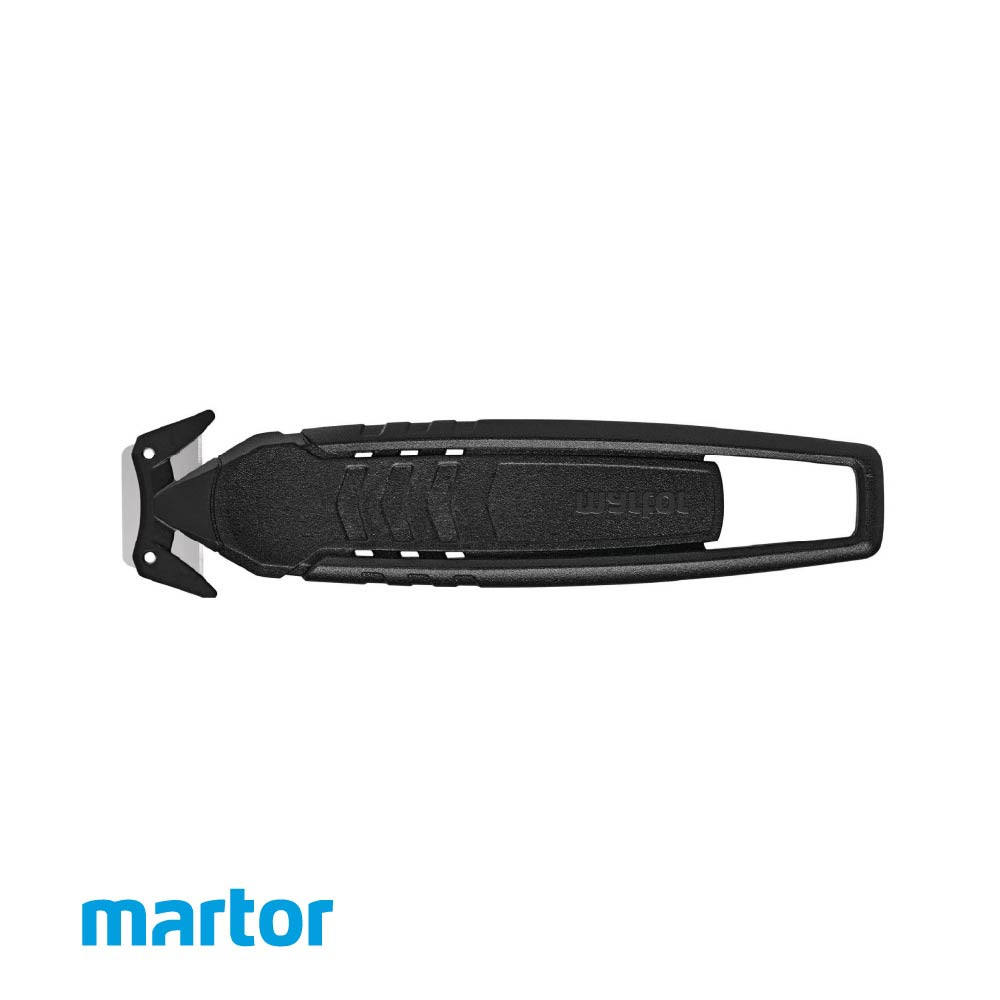 Con el SECUMAX 150 de MARTOR tendrás una sola herramienta para tres tareas distintas: cortar, raspar y rasgar. Los dos bordes de corte están ocultos para proteger perfectamente al usuario y la mercancía embalada. El cabezal de hoja del cuchillo de seguridad de solo 26 g está firmemente unido al mango ergonómico y no es recambiable. Para ello, el SECUMAX 150 está reforzado con fibra de vidrio y fabricado con un mín. del 80 % de plástico reciclado.